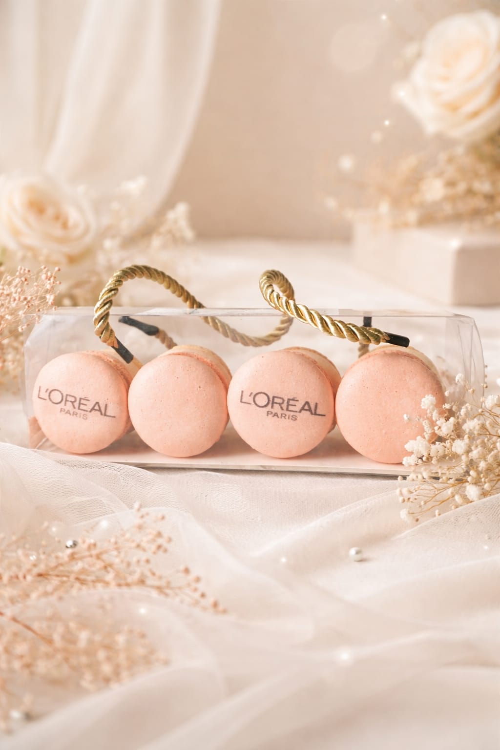 • Pueden llevar tu logo o diseño personalizado impreso en los macarons, o lucir en su versión clásica.